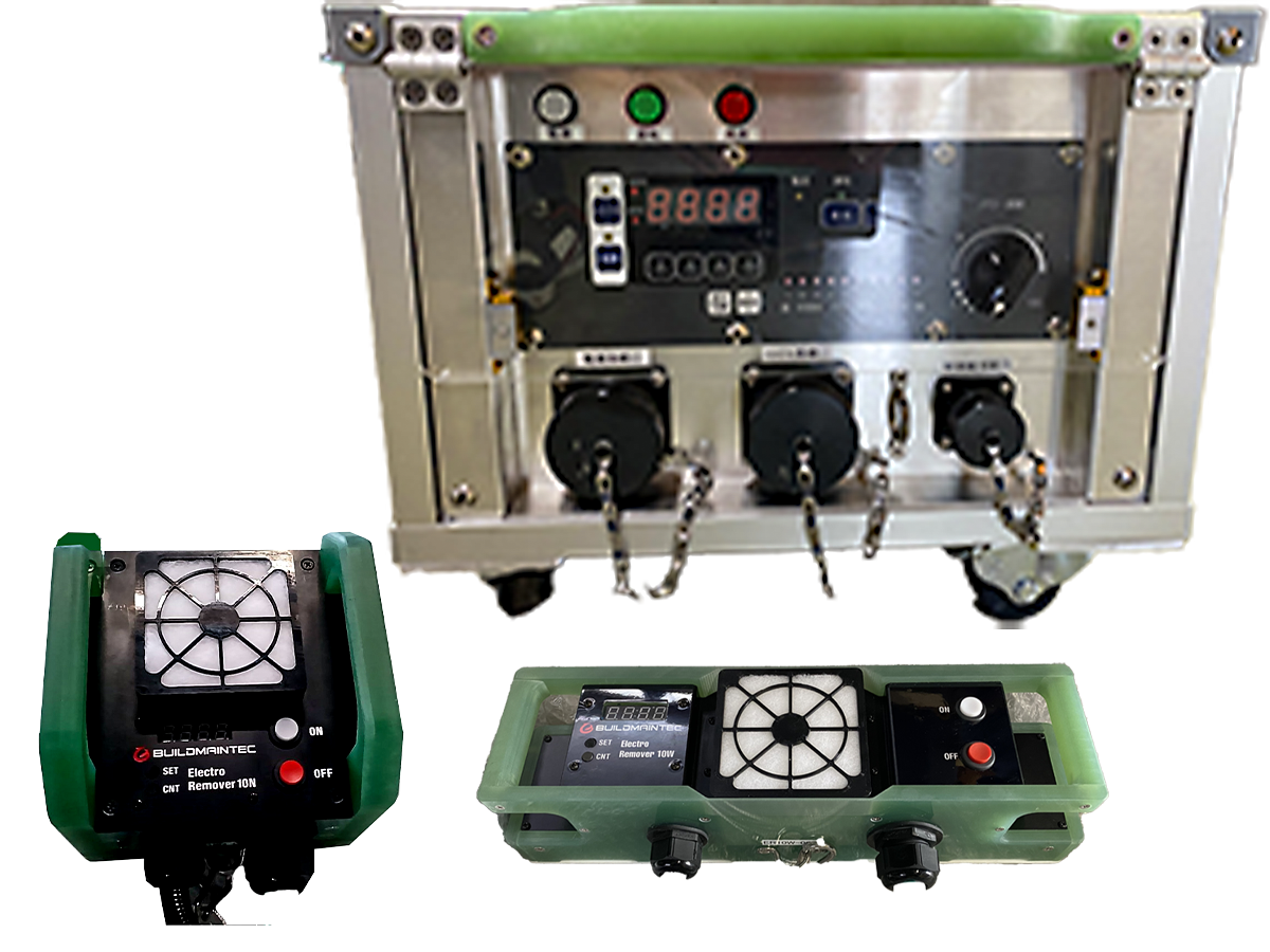 IH大型機器が使えない作業ヤードが小スペースな作業現場や、剥離剤等で剥離作業ができない環境の構造物でも対応できるよう、作業性・機能性を重視した機器を製作しました。